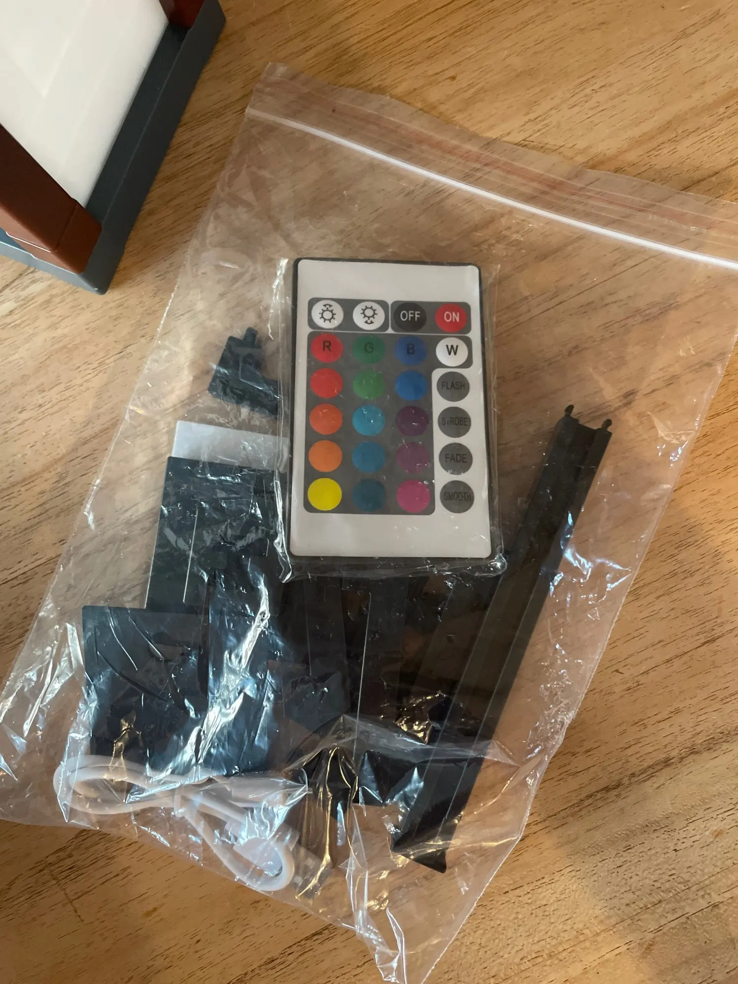 Lamp conforms to its image and description. Well packaged and protected, arrived quickly. A remote control allows you to select the light color, its intensity, lighting effects..., the chain is provided along with batteries and cable, there is also an adhesive sticker to attach the lamp to the wall without making a hole. I am really satisfied.